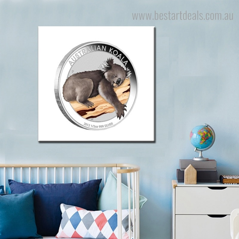 This kids wall art print of Australian koala hanging on a tree with silver typography is perfect to make your kid’s room's walls look more cute.