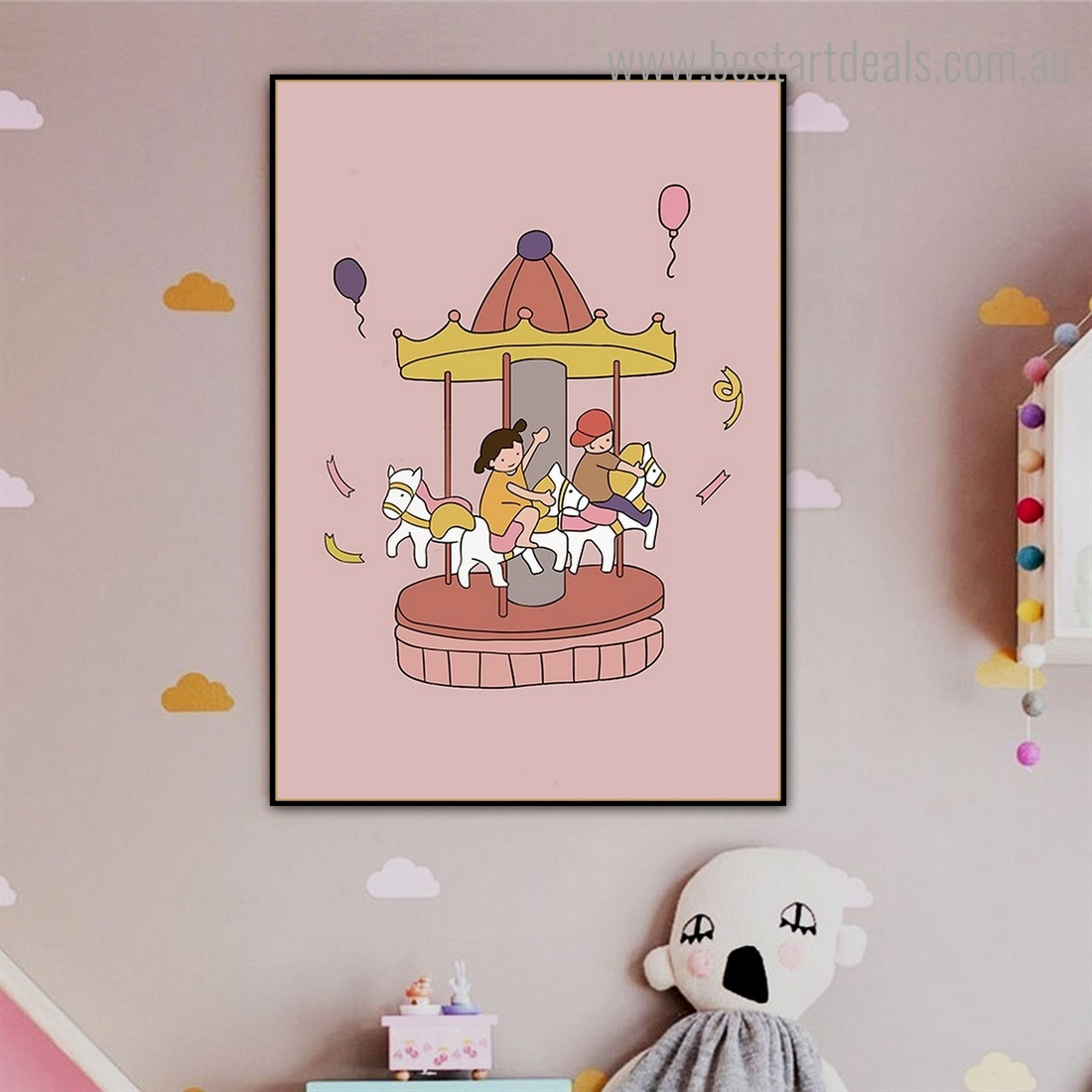 A kids wall art print with paintings of numerous animals like horse, pig, sheep, duck and rabbit driving in one car is surely going to be eye candy for your children and guests as well.