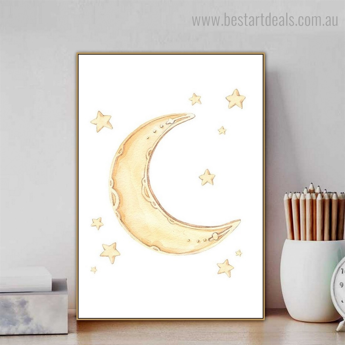 An amazing art print of golden half phoebe and some stars is highly charming for any of the walls of your room as kids love the astronomic world.