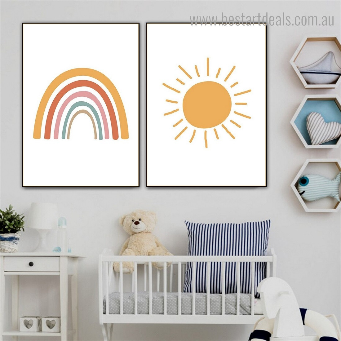 Your child could look up on nothing better to admire on the walls of the room other than an art print of a beautiful rainbow and a sun.
