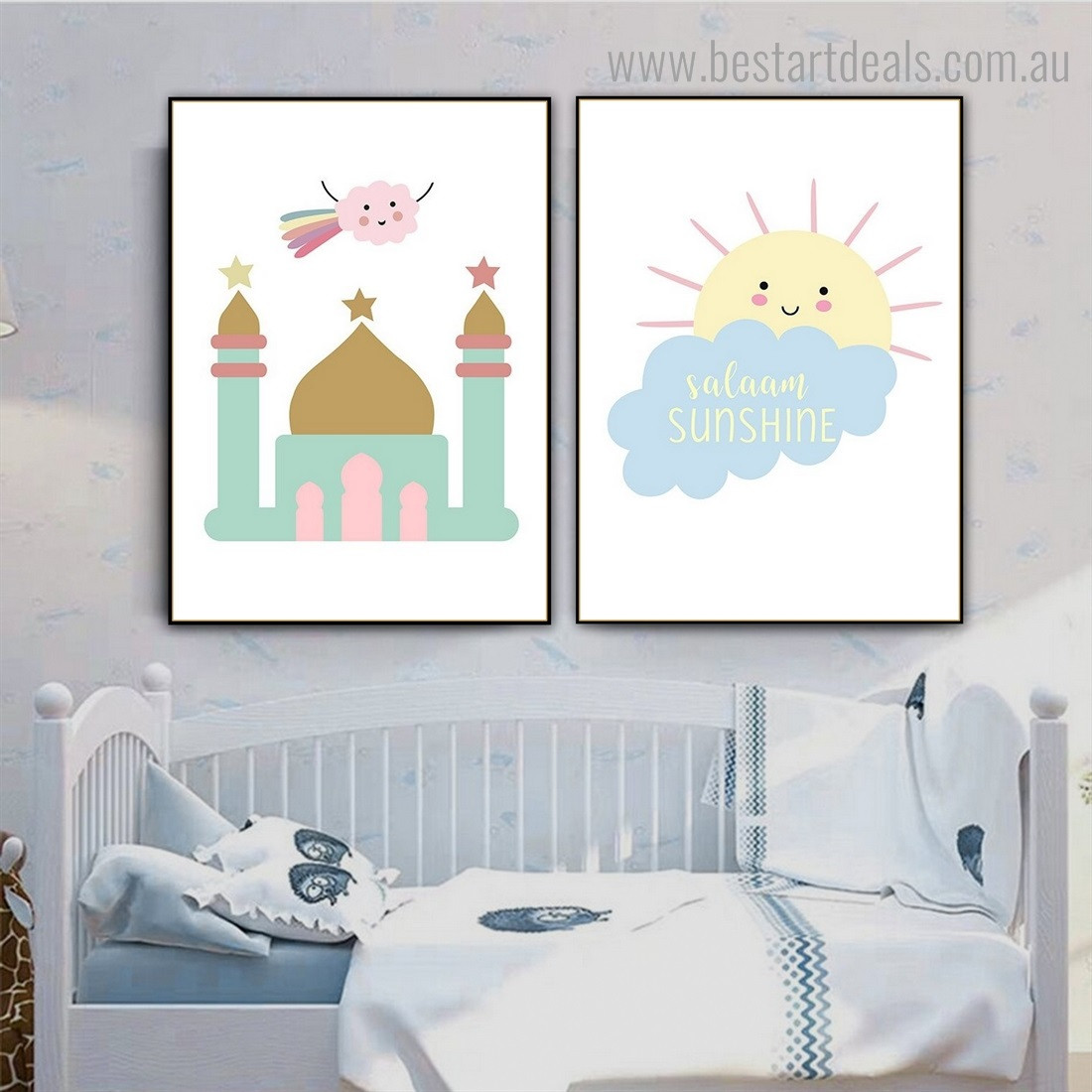 Nothing could be better than bringing positive vibes to your child’s room by putting an art print of mosque, rainbow, sun rise all in beautiful pastel colors as a representation of easy art for kids.