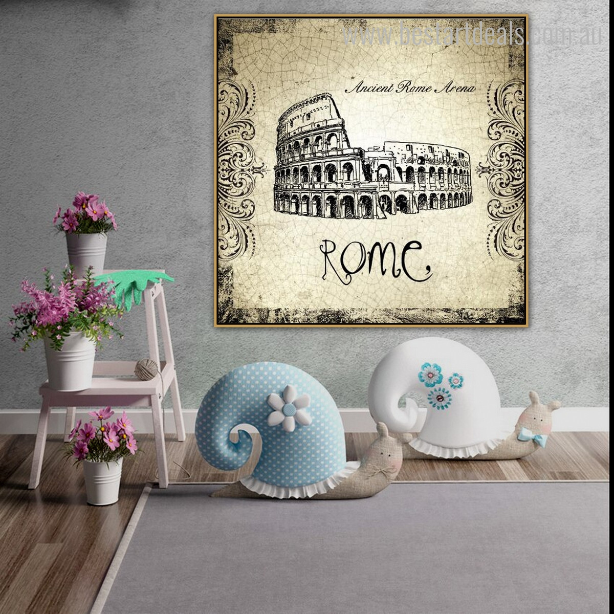 Amongst large architectural prints, Colosseum represents renowned ancient Rome Arsenna with typography and floral borders being flabbergasting enough to add charisma to your walls.