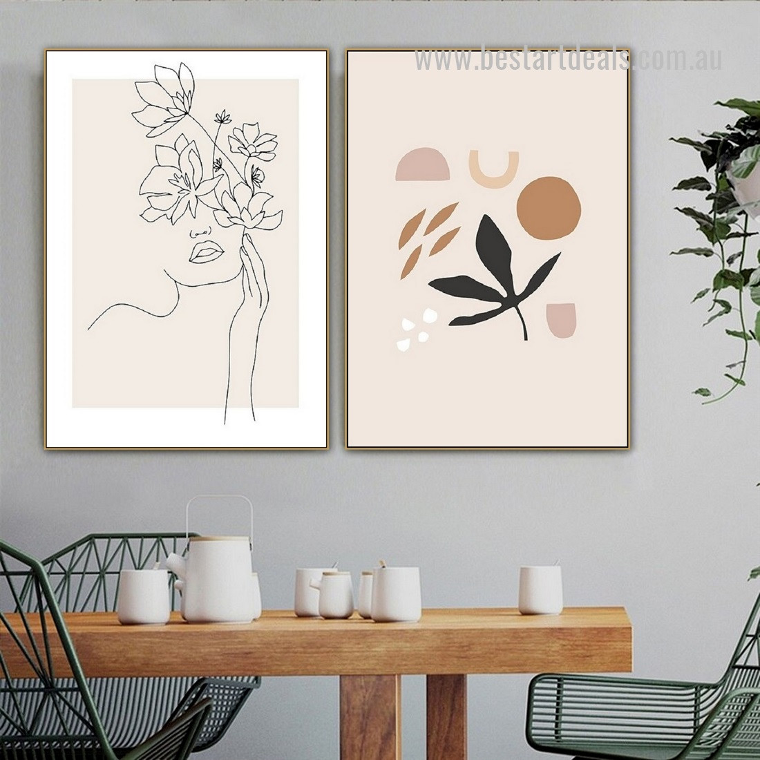 This set of two art prints was inspired by the artist Henri Matisse. While one canvas illustrates a figure in black on a nude background with typographical elements, the other is a face made through a figure in a line pattern. Both prints are of Scandinavian abstract art nature and will bring a touch of minimalism to the walls of your home.