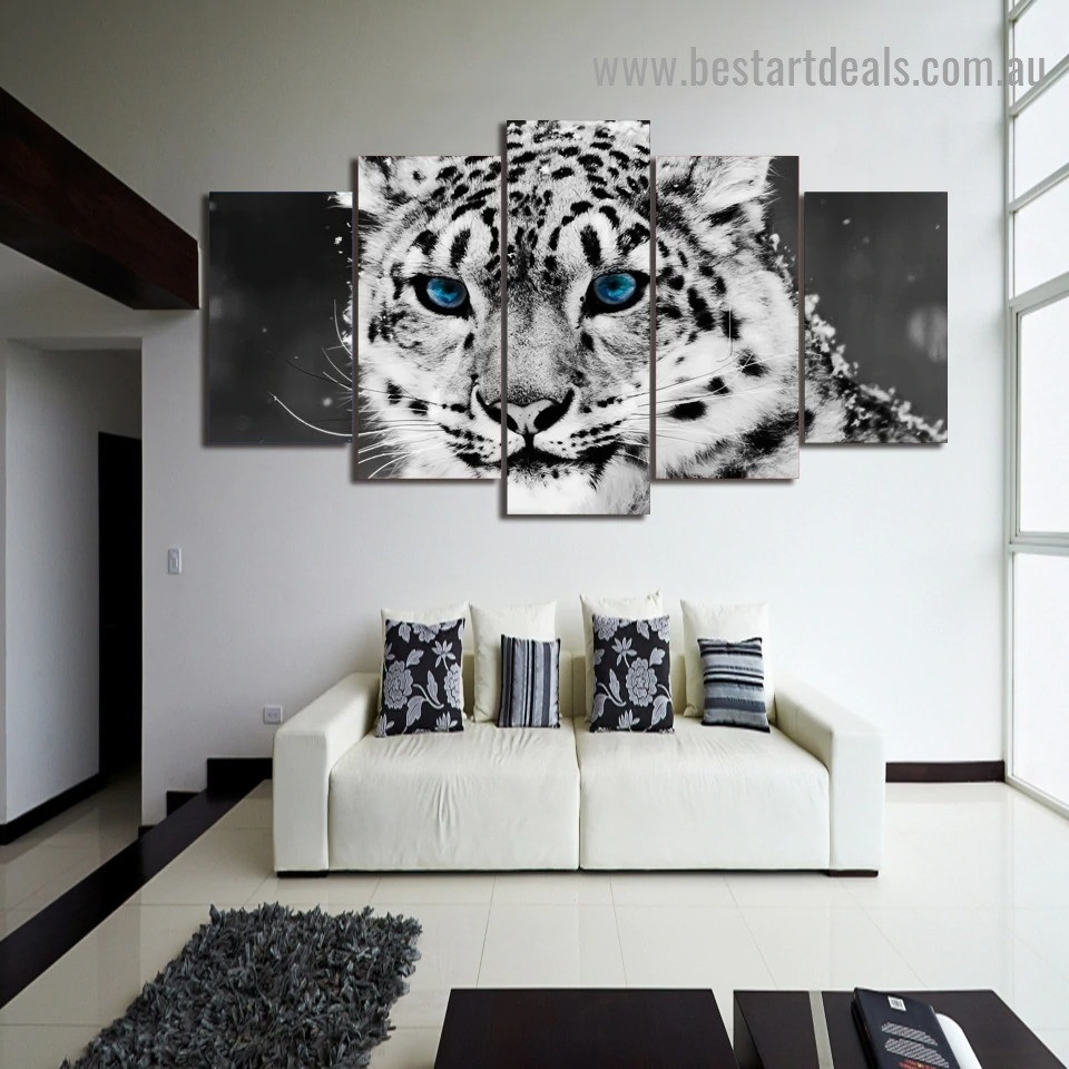 This 5-piece black and white artwork featuring a snow leopard looks extremely captivating and catches everyone’s attention immediately. The sparkling blue color of the eyes is truly an icing on the cake and makes this piece of art phenomenal.
