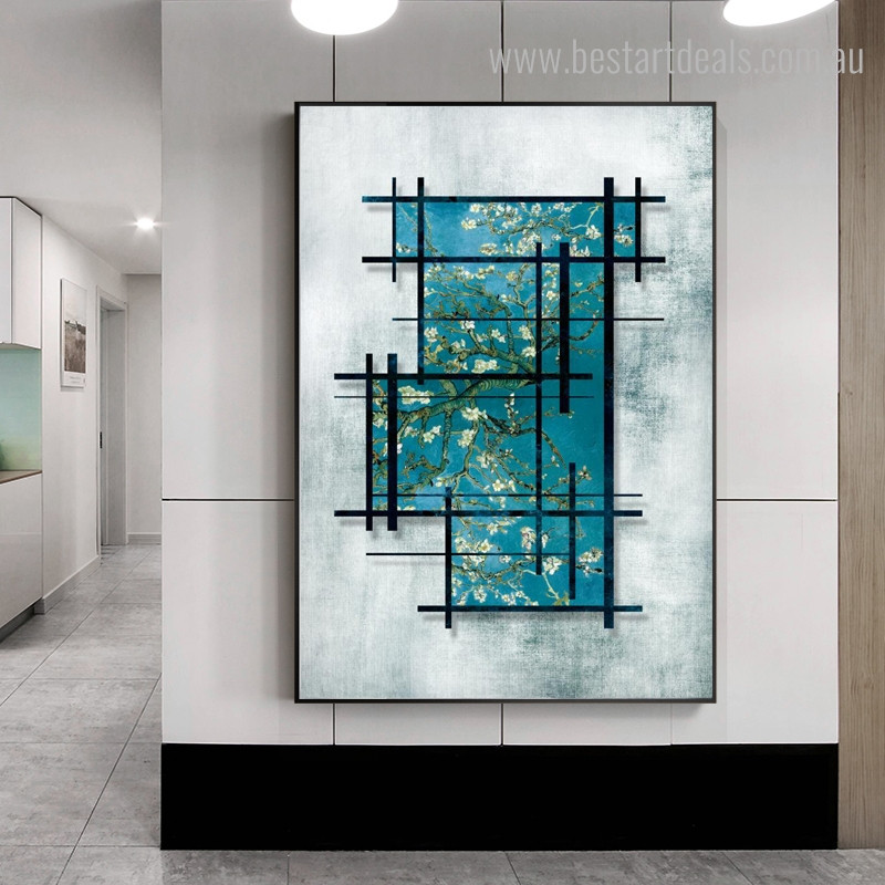 This blue color painting of an almond blossoms made by a Dutch post-impressionist painter Vincent William van Gogh. This painting depicts an abstract tree with white flowers giving a peaceful look. But the unique part of the painting is those vertical and horizontal lines in black color. These lines give the tint of modern art in this painting.