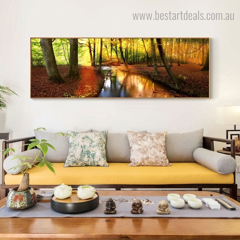If you are seeking some quiet time, you may select the print ‘Autumn Forest’. This print depicts the scene of an autumn view wherein the sun's rays strike through the golden leaves over a calm lake. People accustomed to soothing colours of warm orange, pale yellow, and brown enjoy this view and the warmth added to the room, creating an inviting and peaceful atmosphere that completes the space. This is suitable in the bedroom or as a wall decoration for the dining area so the viewers may enjoy the beauty of nature without leaving their homes.