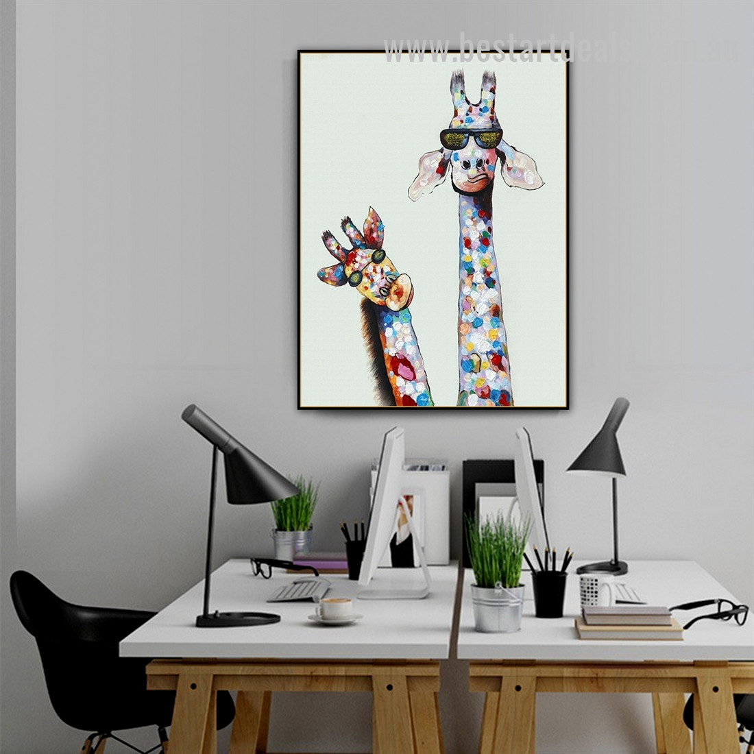 The giraffes on this canvas can glorify the beauty of your wall. Both of the giraffes in this children’s art print are wearing sunglasses. Definitely this art is going to be a favorite for your kids These cute animals will provide fun and happiness to younger ones reminiscing their zoo visit. Vibrant use of colors, mostly red, white, yellow, and blue mixed well with the white background of this cute canvas wall art.