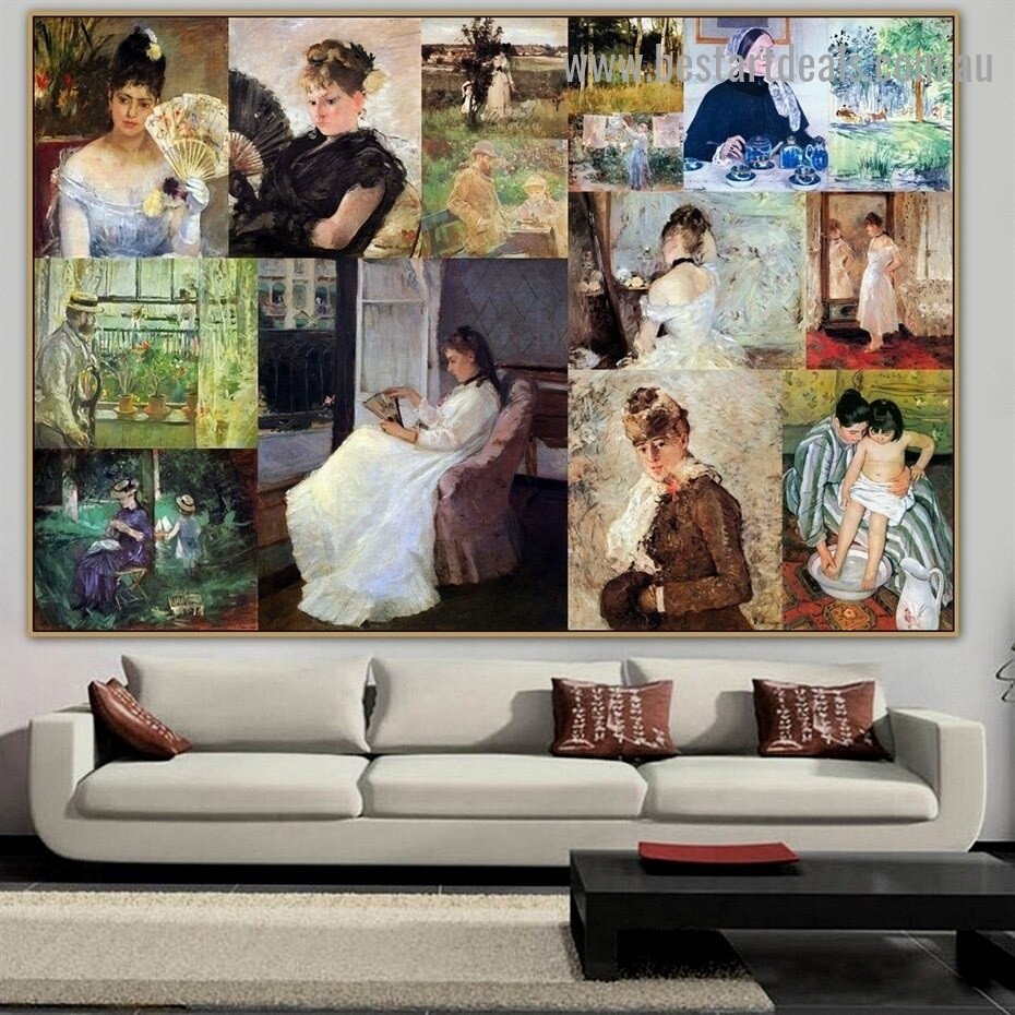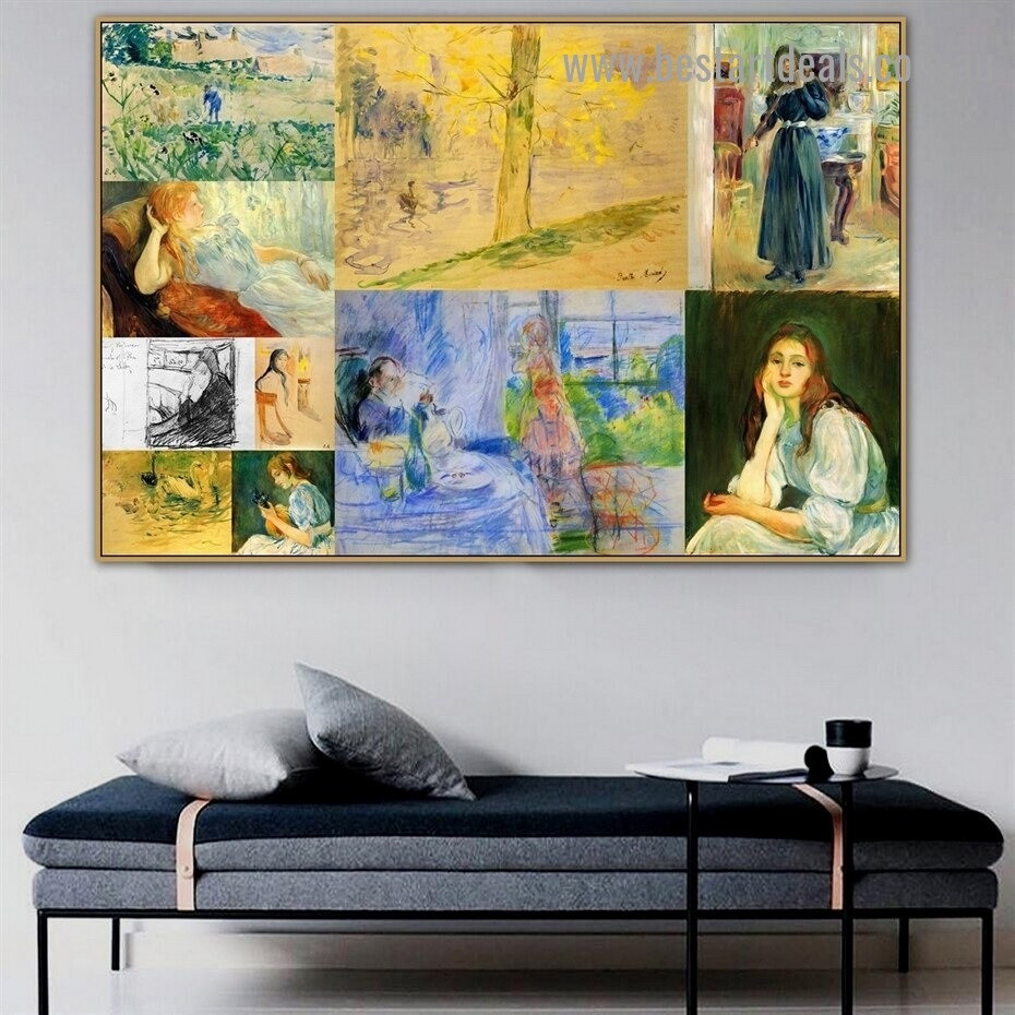 These print collages of well-known impressionist work by Mary Stevenson Cassatt and Berthe Marie Pauline Morisot. Some of the paintings in print are a young girl lying down, Julie playing the violin, Julie daydreaming, and swans. The paintings were created post-impressionistic, making them an excellent choice if you have associated home decor ideas.