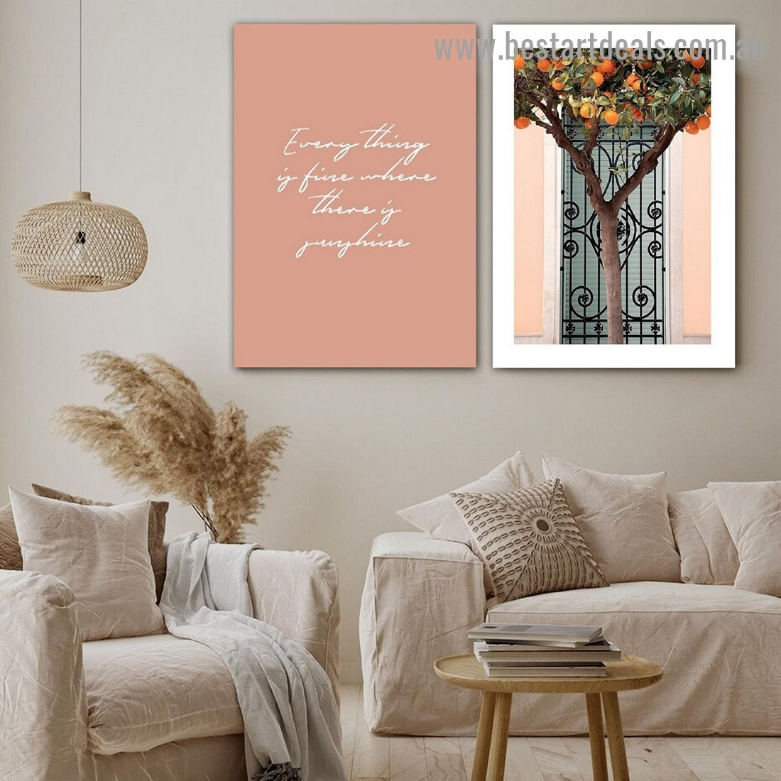 We all need encouragement at some point in our lives, and nothing could be better than having art that promises to spur us on every day. This 2 piece of canvas art set features a beautiful quote written on the canvas, a subtle color palette, and a tree loaded with oranges in front of an intricately designed gate. This can be a perfect option to deck your drab wall up if you embrace realism and a detailed depiction of reality. This trend is here to stay and will continue to beguile you for many years to come.