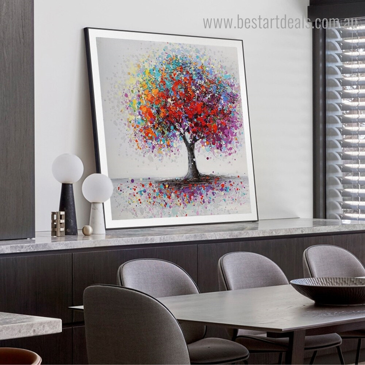 The vivid hues and disorderly brushstrokes make this piece of art well deserved to be in your sanctuary.