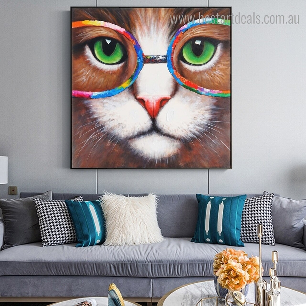 Homeowners with remarkable and unusual home décor choices would simply adore the idea of showcasing this bizarre piece of graffiti canvas art. The canvas depicting the face of a cat wearing spectacles is definitely not an artwork that you can easily find in the homes. Only those with one-of-a-kind preferences and a different style statement would buy this peculiar art to stand apart from others.