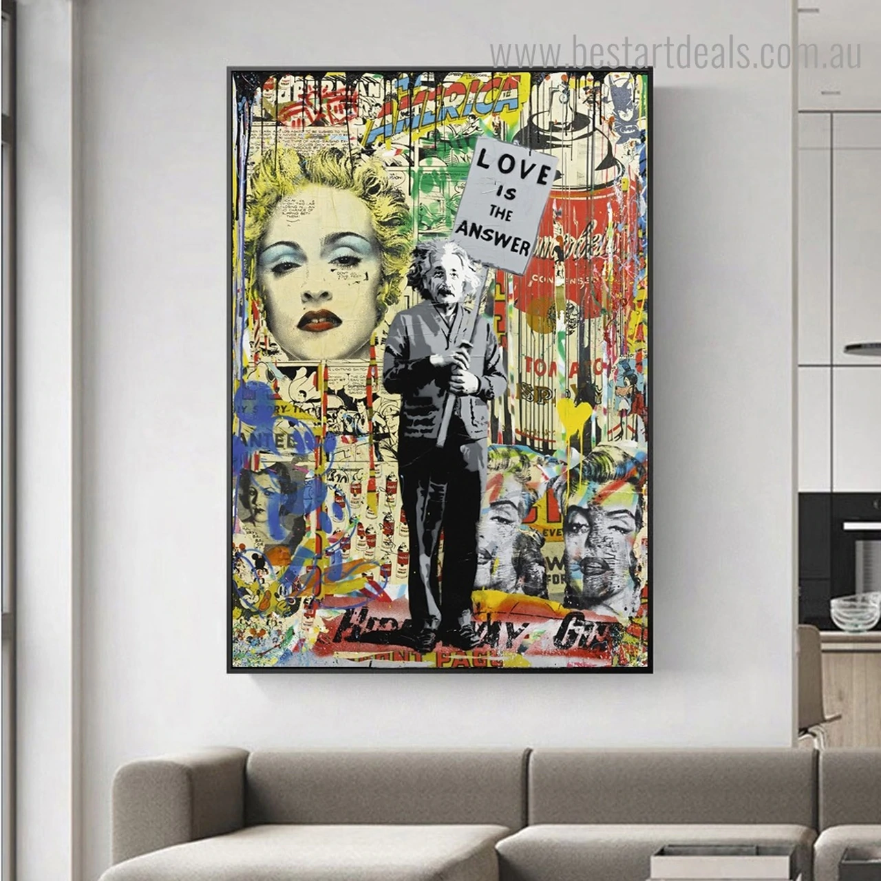 Showcase your not-so ordinary, queer side of the emotions by displaying this artwork showcasing the world-famous physicist Albert Einstein holding the board carrying the message- ‘love is the answer’.