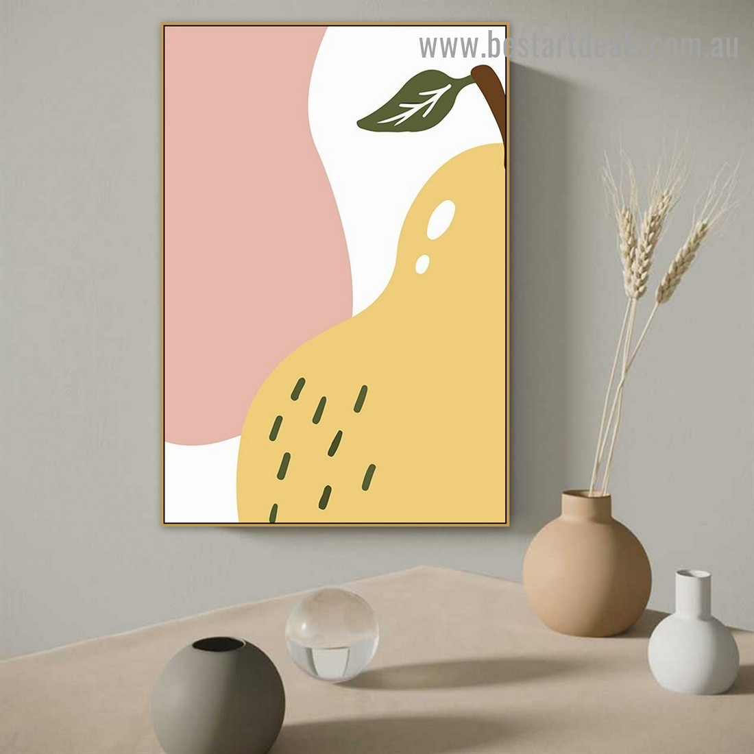 The pink and white exotic pyrus communis fruit is minimalist wall art augmenting your bold kitchen spaces. Captivating pastel shades add colors and statement to your wall without creating a mess.